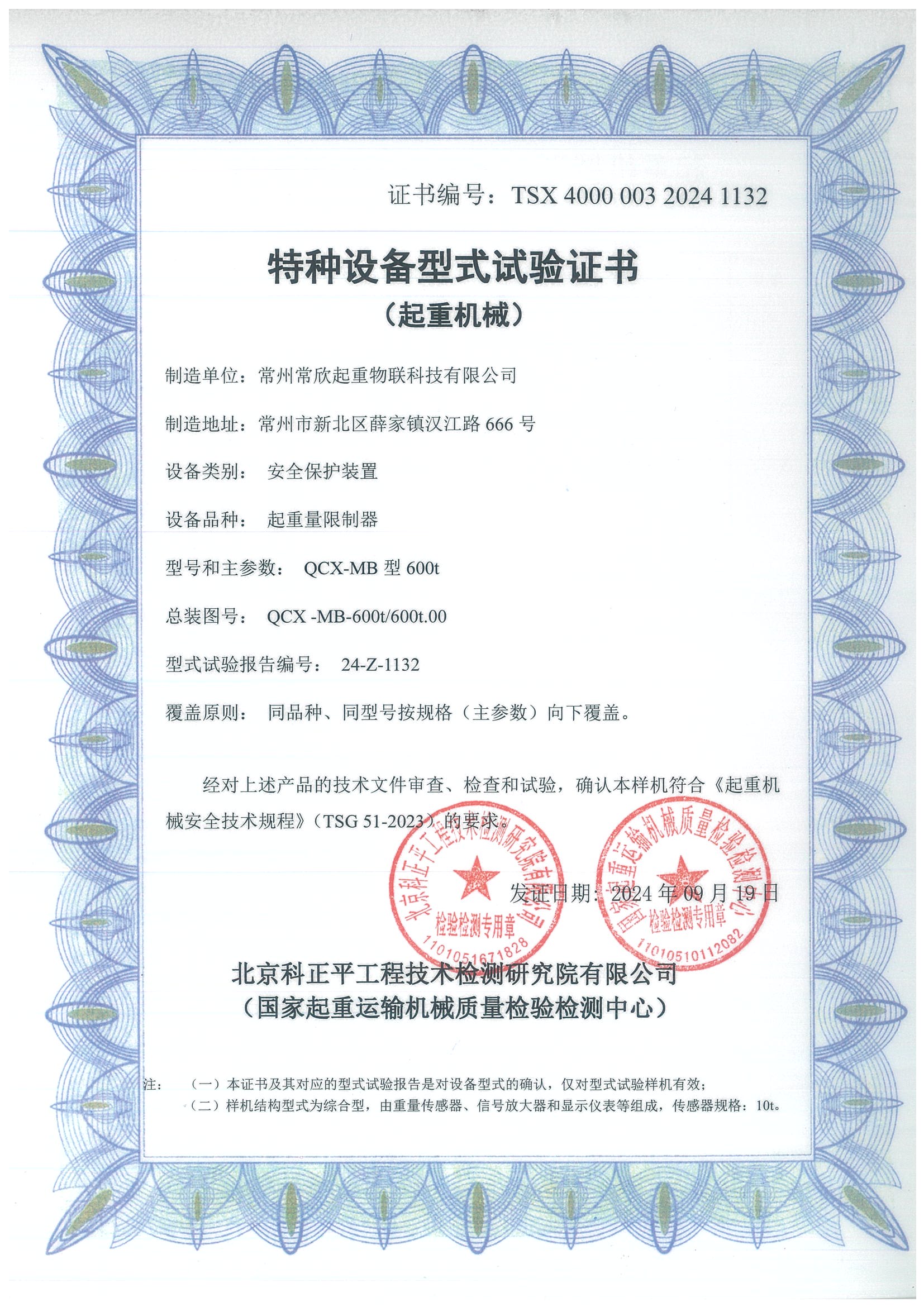 型式试验合格证